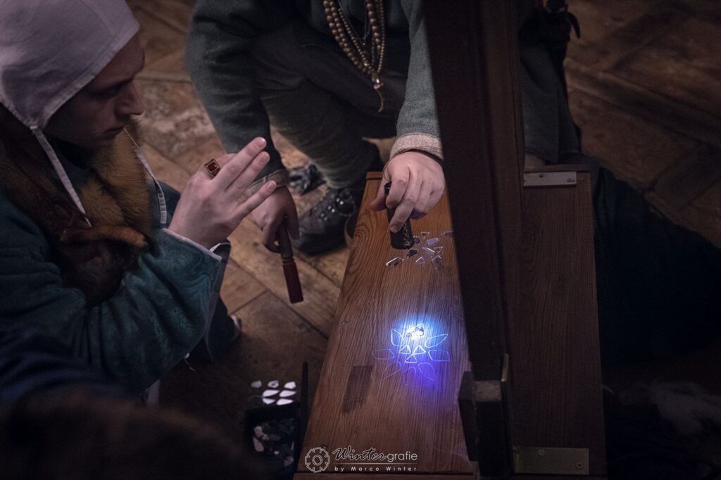 Als der Spiegel schließlich in den Hof gebracht war, stand dieser unerwartet einem zweiten Spiegel gegenüber. Im Verborgenen mitgebracht von Hermanns Begleiter, dem Magier Bligg, war dieser vor dem Tor aufgebaut. Es bildete sich ein Energiefeld, es kulminierte die Magie: In einem gewaltigen Ritual des Spiegelmagiers Bligg wurden Hermanns Tochter Eloise und Sir Tristan aus dem Dopplerreich in die Burg gerissen, begleitet von Explosionen, Nebel und einem weiteren Angriff Hermanns auf das Tor. Eloise, hin‑ und hergerissen zwischen der Welt, in der sie Liams Gemahlin und Markgräfin war, und der düsteren Realität der Belagerung, wurde zur Figur, an der sich Hoffnungen, Schuld und Hermanns Besessenheit brachen.